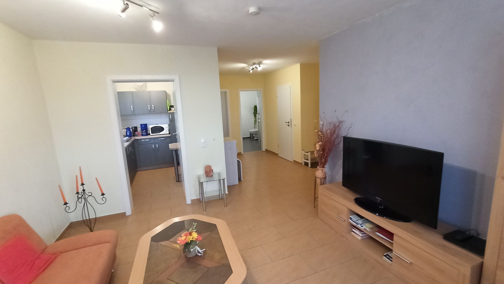Das Wohnzimmer ist mit SAT-TV und Flachbildschirm ausgestattet.